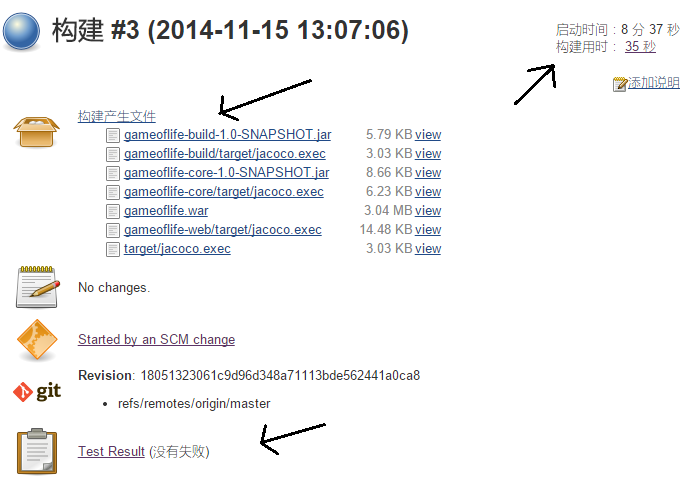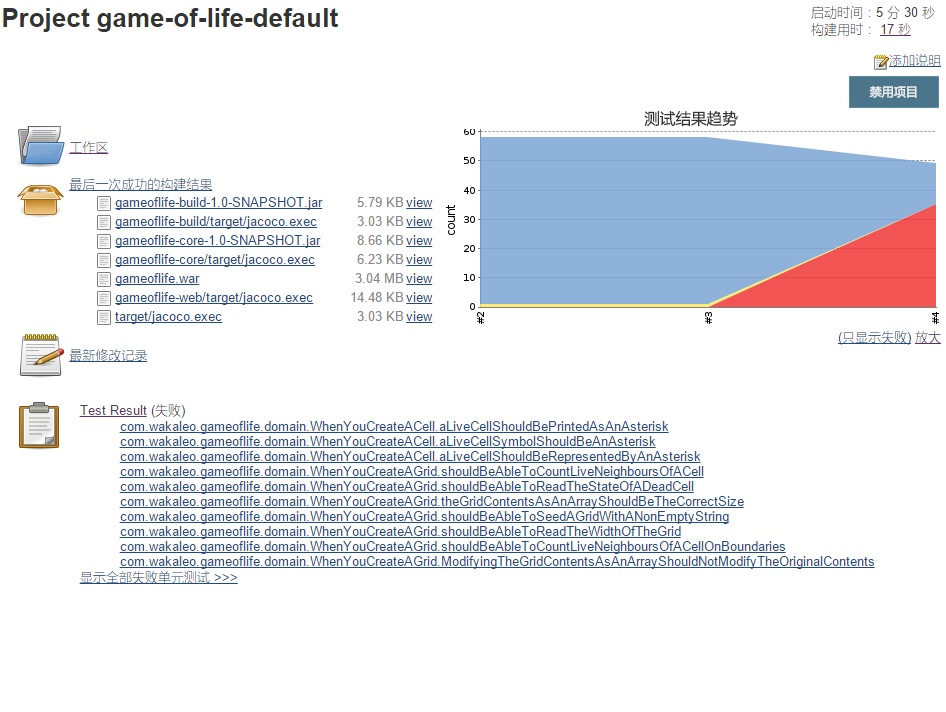 - 大约一分钟后,依照对任务的配置,这将自动触发构建,其结果如下: